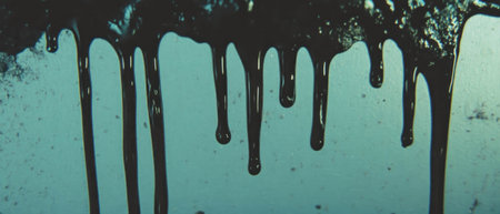 Overlay texture showcasing metallic paint drips on a smooth surface in dramatic lighting