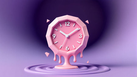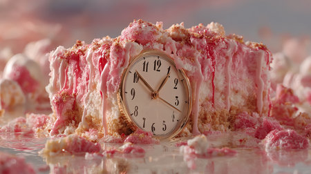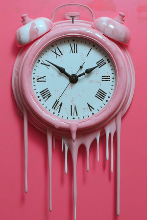 Unique clock design drips with vibrant pink hues, capturing the essence of time's passage.