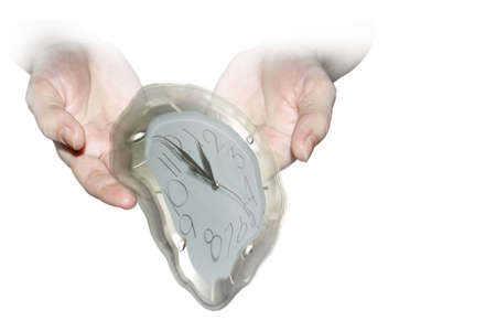 A wall clock flowing down like melted. Space for text