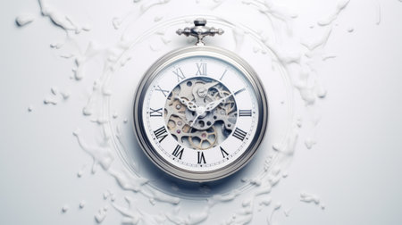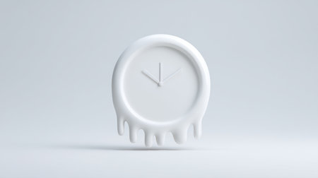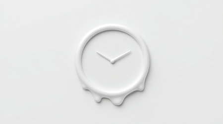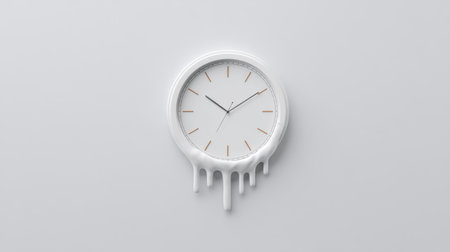 This unique melting clock design embodies creativity and innovation. Presented against a minimalist white background, it serves as a striking visual element for various concepts.