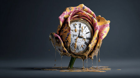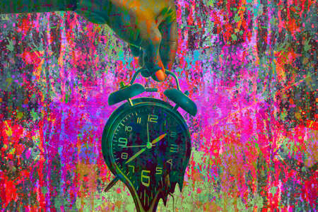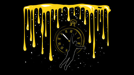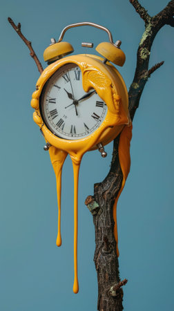 This artwork features a clock with melting hands, illustrating the distorted perception of time in a creative and thought-provoking way.