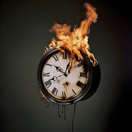 Burning clock on dark background. Time is running out concept.