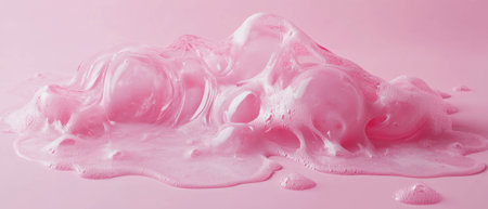 Melting bubblegum creates gooey, runny texture on a smooth surface in soft pink