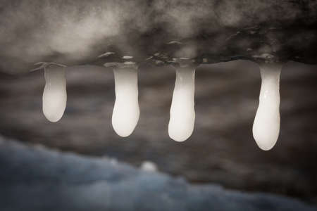 Icicles and water drop, abstract background with bokeh and small depth of field, Jokulsarlon, Iceland