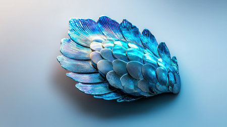 Mermaid scale with neon blue aura, isolated on white, shimmering for fantasy branding