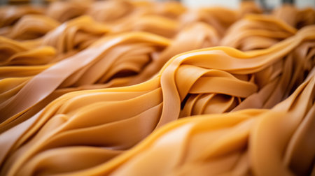 This image showcases waves of freshly made pasta with a rich golden hue, highlighting the smooth texture and culinary appeal perfect for food enthusiasts.