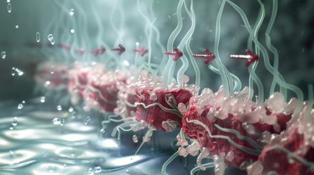 3d render cell membrane Phospholipid Bilayer. Layers of molecules. Gene expression. nucleotide database. Fluid mosaic model for education. Human gene. Plasma membrane structures.