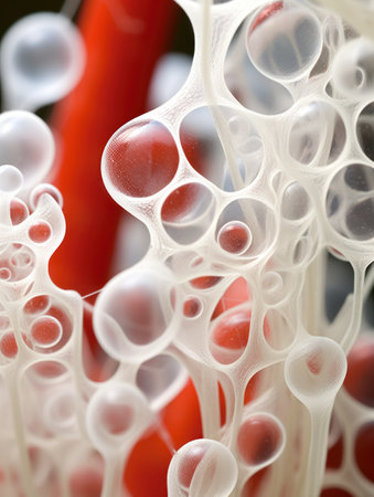 Dynamic Cellular membrane structure closeup. Porous stomate slice vascular pattern. Generate Ai