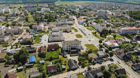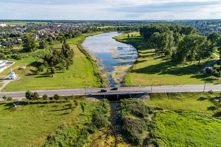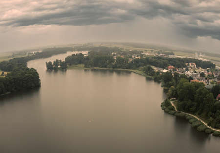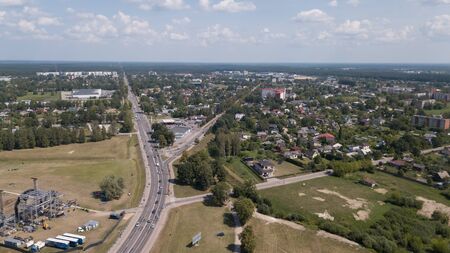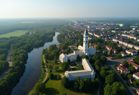 Aerial view of Birstonas city wich is located on the shore of Nemunas river in Lithuania. Its a small SPA resort with natural mineral waters.