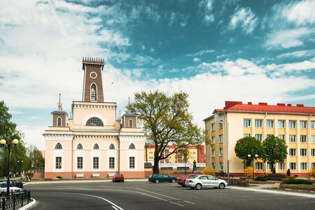 Chachersk, Gomel Region, Belarus. Famous Landmark - Old City Hall In Spring Day In Chechersk. Town Hall