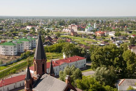 Tobolsk, Tyumen region, Russia, September 09, 2019. View from the Red Square and Tobolsk Historical and Architectural Museum-Reserve on the lower part of town with a lot of beautiful houses