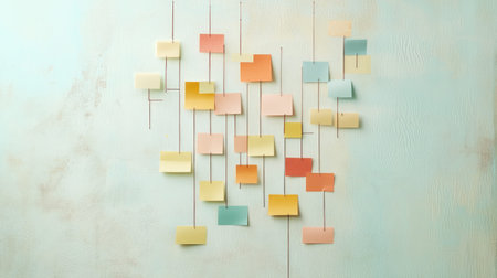 Colorful sticky notes arranged on a wall in minimalist style against a dark blue background