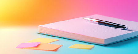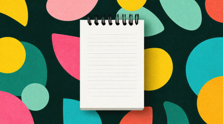 A vibrant notepad rests on a colorful abstract background, perfect for creative projects, note-taking, or inspiring artistic ideas with its modern design elements.