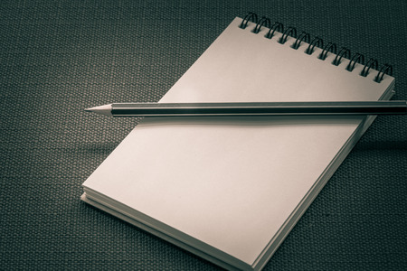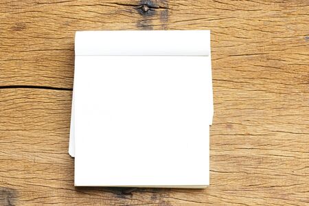 Small white notebook on old grunge wood texture background.