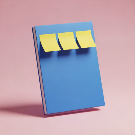 Blue notebook with yellow sticky notes
