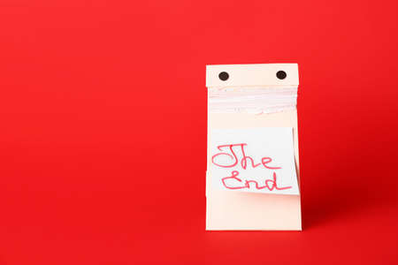Tear-off calendar at the end of the year on color background