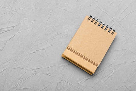 An empty grey desk calendar on a stone background