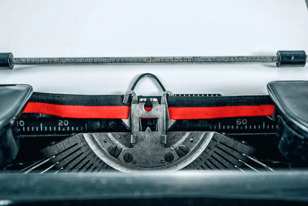 Old antique typewriter with inserted paper for writing articles and books on the desktop.