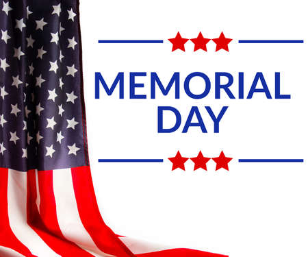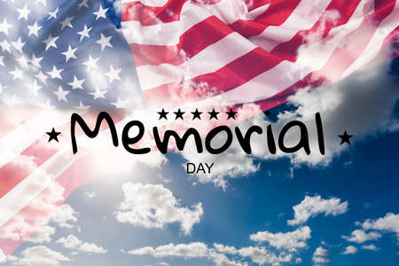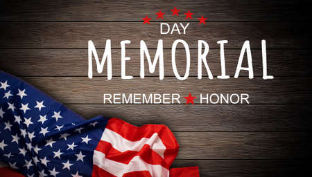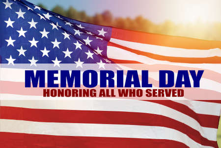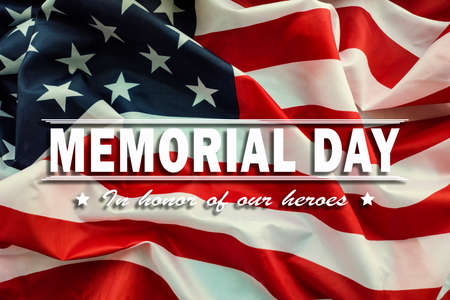 Text Memorial Day and Honor on flowing American flag background. Concept of Memorial day or Veterans day in America.