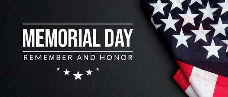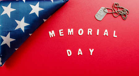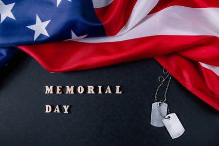 Memorial day concept. American flag and military dog tags on a black background. Remember and honor.