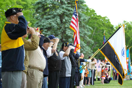 Veterans Saluting at Memorial Day Ceremony Held in Lexington, MA on Tuesday, Sunday, May 24, 2015.
