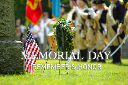 Memorial Day Ceremony, Tomb Stone, Lay down Wreath, US Flag.