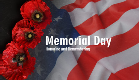 Text US ARMY and flowers on American flag. Memorial day celebration