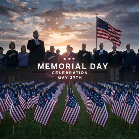 Happy Memorial Day. American flags close up with the text REMEMBER & HONOR