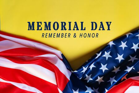 USA Memorial day and Independence day concept, United States of America flag on yellow background