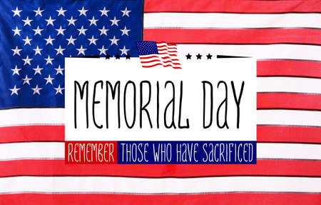 Patriotic message for Memorial Day USA in a wooden frame on a American flag background