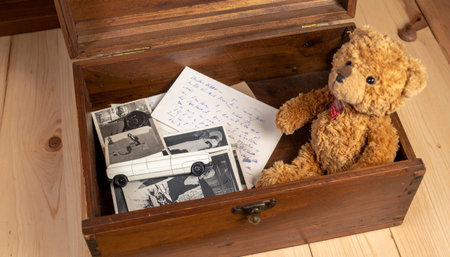 Warm tones highlight hands holding old photos, sparking nostalgia and a deep connection to cherished memories.