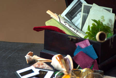 old photography box family memory. genealogy research old photos banner. vintage paper family history. nostalgia banner design.