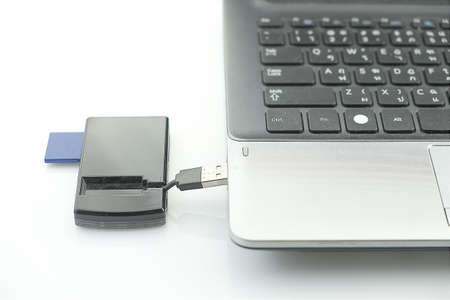 Laptop with Loaded Card Reader,isolated on white background