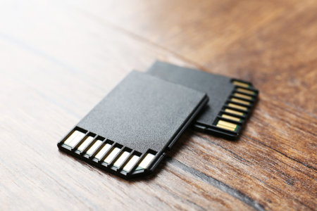 SD memory card on wooden table