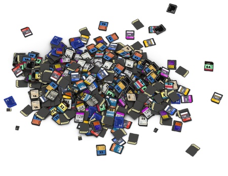 Chiangmai, Thailand - November 12, 2014: Pile of Used Sandisk Extreme Compact Flash cards