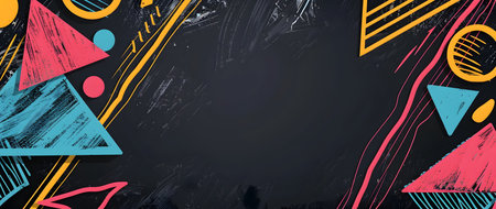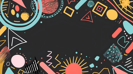 Colorful Geometric Doodle Border Design with Blank Space for Creative Background or Mockup Playful and Energetic Abstract Pattern with Triangles Circles Lines
