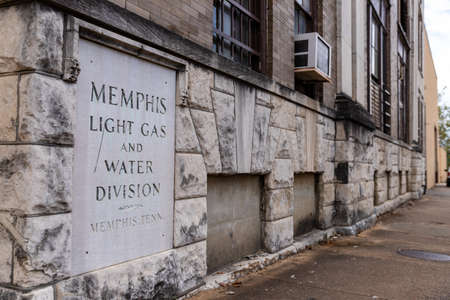 Memphis, TN / USA - September 3, 2020: Memphis Light Gas and Water Division building cornerstone.