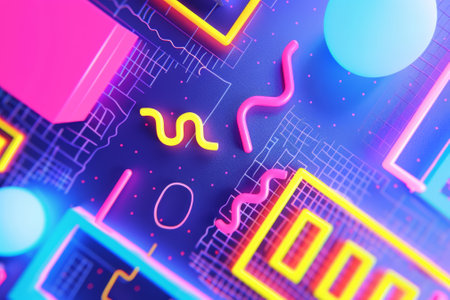Vibrant 80s design with geometric shapes and neon colors showcasing retro influences