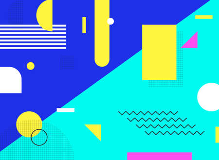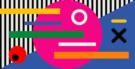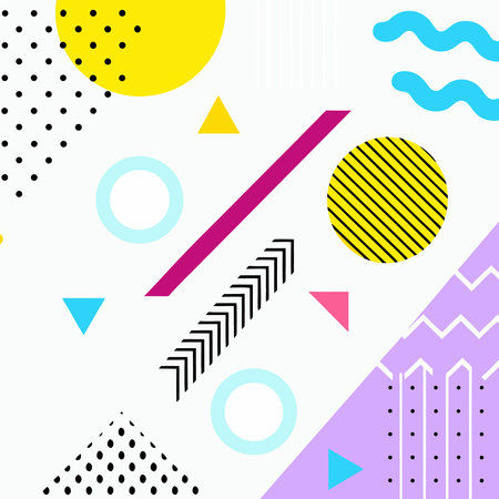 abstract Memphis style retro background with multicolored simple geometric shapes. Vector Illustration