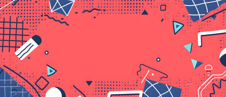 Vibrant Geometric Doodle Print Border with Blank Space for Creative Design Elements Modern Minimal Trend with Colorful Shapes Layers and Abstract Background for Banners Flyers or Mockups