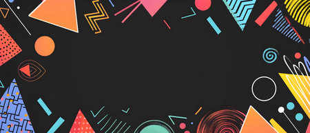 Colorful Geometric Doodle Border Design with Blank Space for Creative Background or Mockup Playful and Energetic Abstract Pattern with Triangles Circles Lines