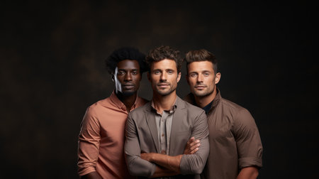 man black studio friends lifestyle style trendy young portrait group fashion. Generative AI.