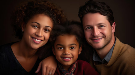 Portrait of a loving family of three enjoying a moment together indoors, smiling warmly in a household setting, radiating happiness and close connection.