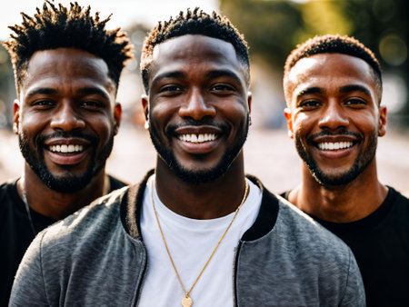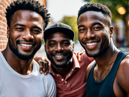 photo of group happy black strong man, generative AI
