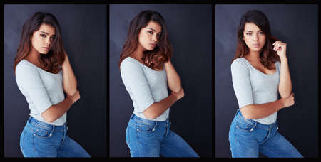 Giving you that look. Composite shot of a beautiful young woman posing in the studio.
