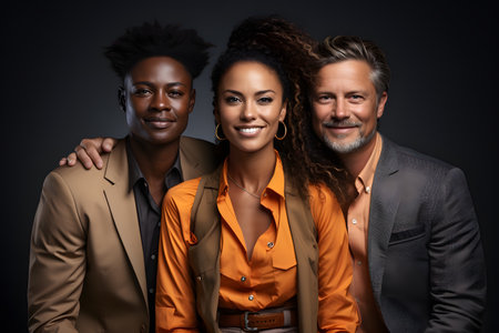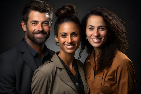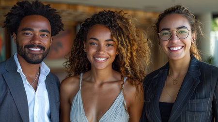 Three people are smiling and looking at the camera, AI