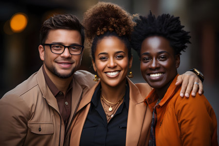 An AI generated illustration of Three individuals, each with their own unique features, stand together, embodying the beauty of human diversity