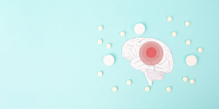 Brain with pills, Alzheimer awareness day, dementia diagnosis, Parkinson disease, memory loss disorder, damaged mind