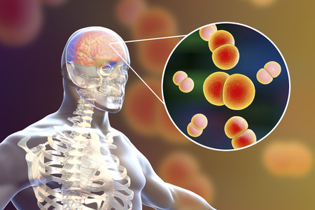 Brain infection caused by Streptococcus pneumoniae bacteria, medical concept, 3D illustration