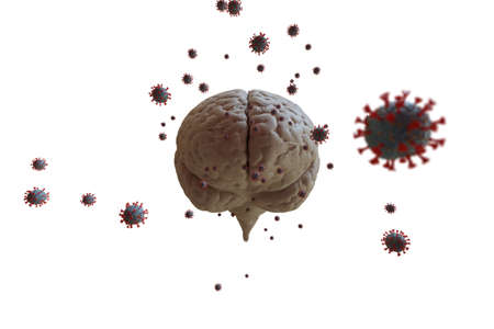 Coronavirus attacks the brain. 3d illustration.